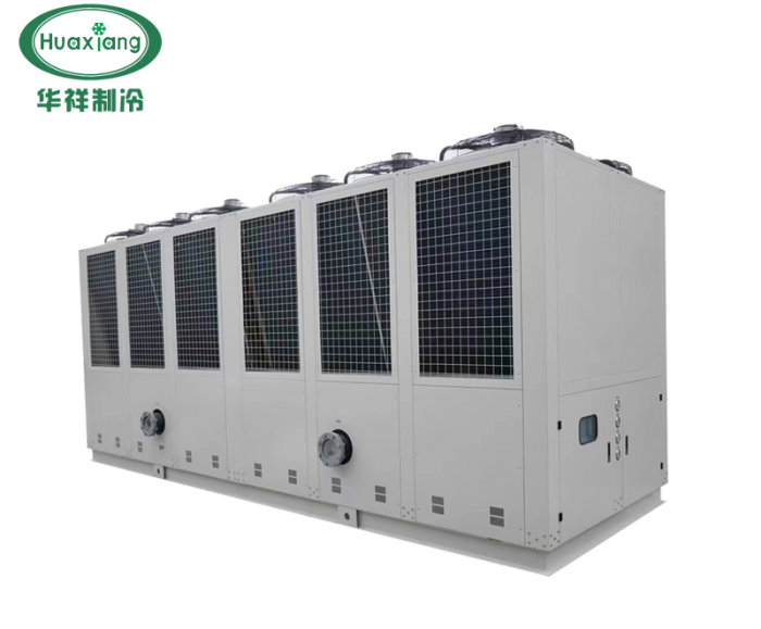 風(fēng)冷螺桿式冷水機(jī)主要以空氣作為冷卻源,特別是在資源匱乏的地區(qū),如中國(guó)的西北或東北,國(guó)外的不地因缺水的國(guó)家或地區(qū)特意設(shè)計(jì)的大型機(jī)組。因其關(guān)鍵部件-壓縮機(jī)采用螺桿式故名風(fēng)冷螺桿式冷水機(jī),機(jī)組由蒸發(fā)器出來(lái)的狀態(tài)為氣體的冷媒;經(jīng)壓縮機(jī)絕熱壓縮以后,變成高溫高壓狀態(tài)。被壓縮后的氣體冷媒,在冷凝器中,等壓冷卻冷凝,經(jīng)冷凝后變化成液態(tài)冷媒,再經(jīng)節(jié)流閥膨脹到低壓,變成氣液混合物。其中低溫低壓下的液態(tài)冷媒,在蒸發(fā)器中吸收被冷物質(zhì)的熱量,重新變成氣態(tài)冷媒。氣態(tài)冷媒經(jīng)管道重新進(jìn)入壓縮機(jī),開(kāi)始新的循環(huán)。這就是冷凍循環(huán)的四個(gè)過(guò)程。也是螺桿式冷水機(jī)的主要工作原理。